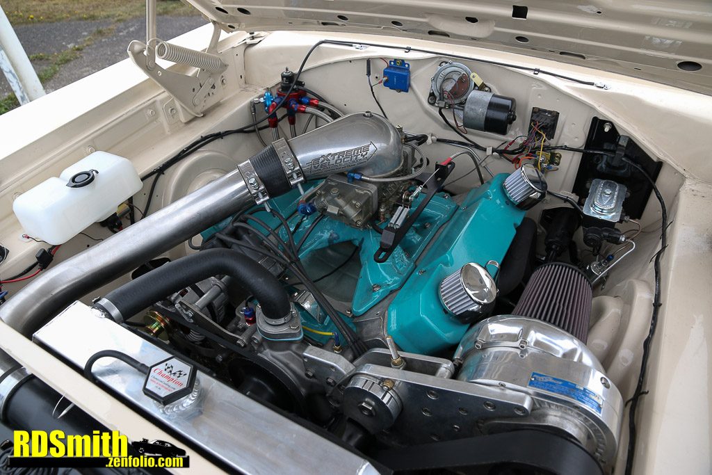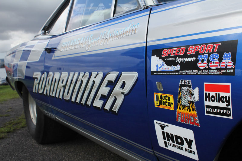 Yet another new Billadeau toy. This freshly imported station wagon became the home to a pro-charged 452ci big block. Based on a 400ci block and fitted with Edelbrock heads, coupled to a 727 transmission and Dana 60 axle, the motor produced 703hp with 720ft-lbs of torque. Wheels up launches are no problem for this heavyweight!